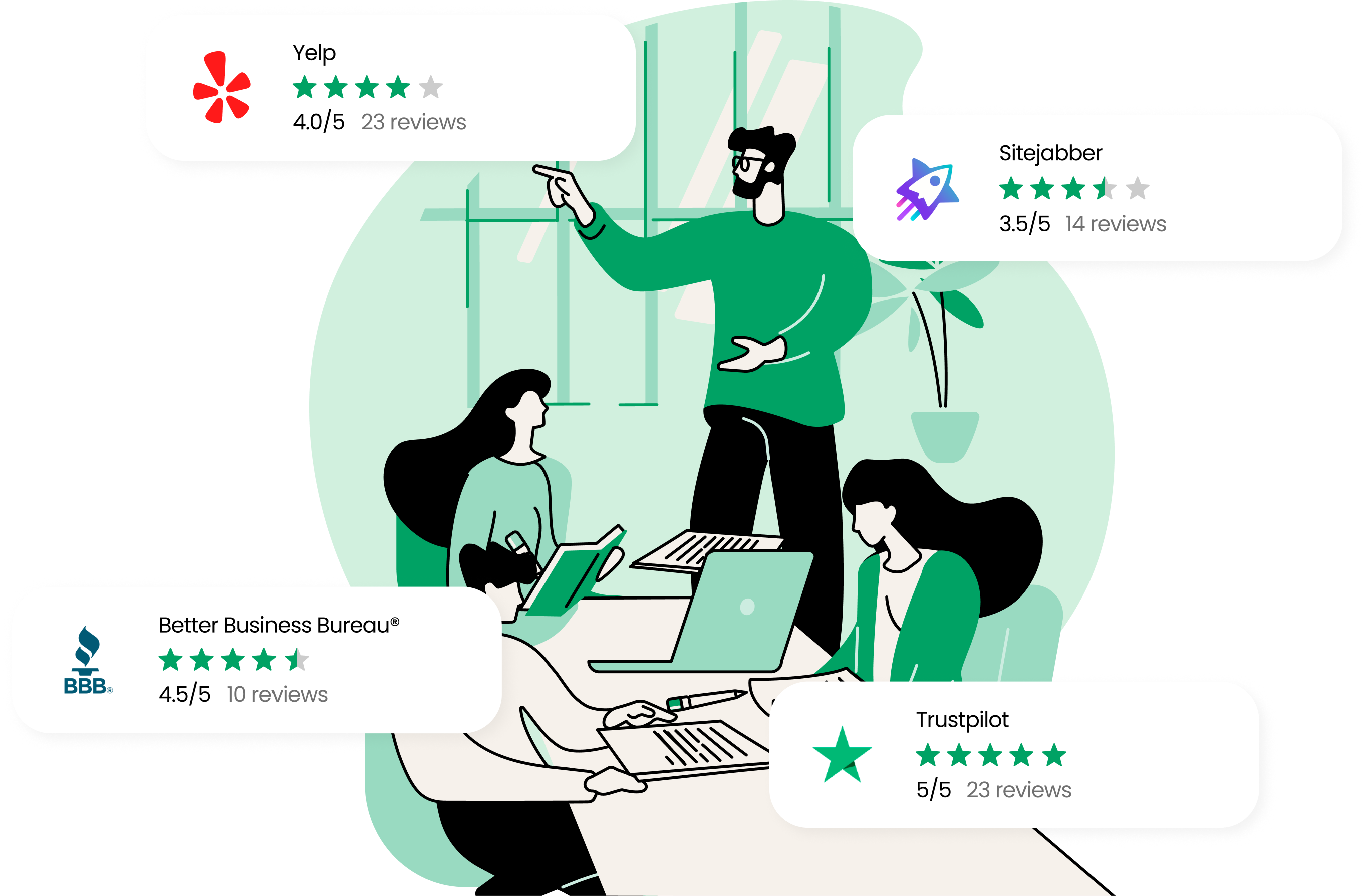 Presents a comprehensive overview and summary of a company's reputation integrated into the on-site review display.